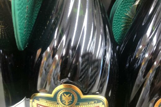 - Or brillant. Bulles très fines, beau cordon de mousse.